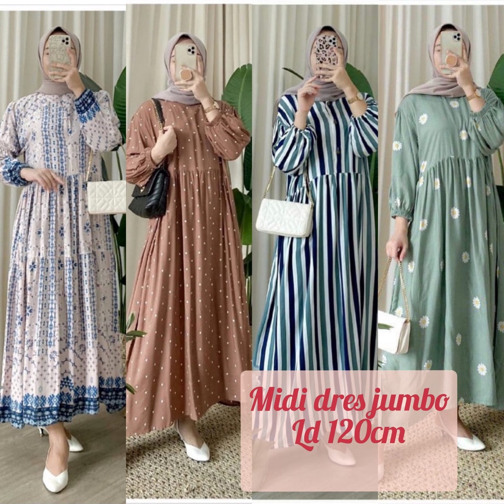 Midi dress/ midi dress rayon/ midi dress jumbo/ midi dress muslim / Dress muslimah / midi dress ld 120cm / dress jumbo/ midi dres/ dress rayon