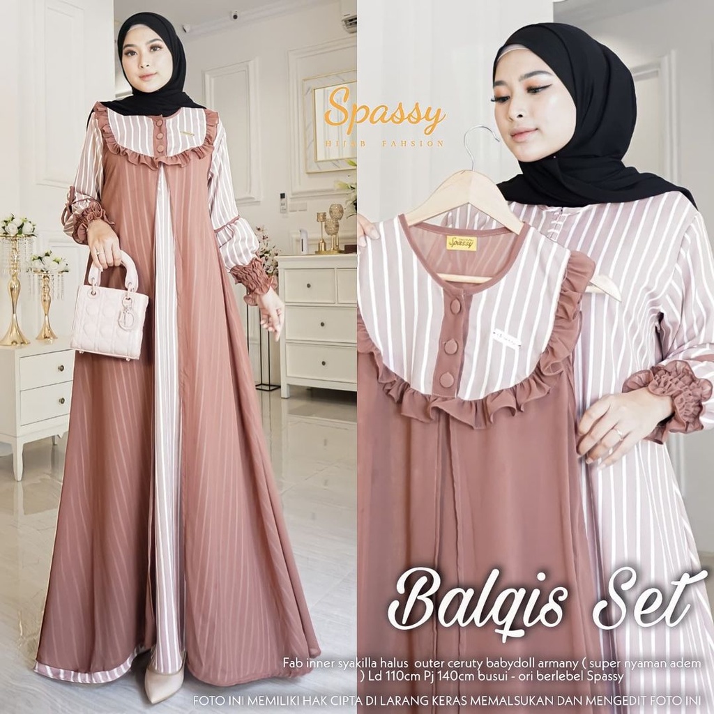 Balqis Set 2 in 1 Gamis + Outher Terpisah Bisa Di Lepas Busui Friendly dan Wudhu Friendy Bahan Ceruty mix Syakila IMPORT